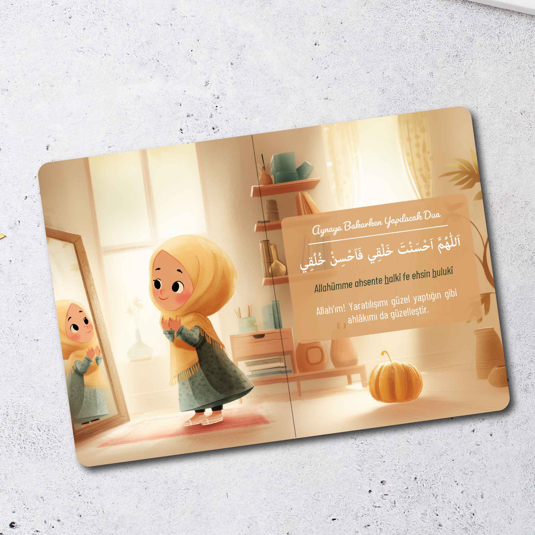 Hadis-i şeriflerde birçok dua geçmektedir. Bu dualardan Peygamberimizin (sallallahu aleyhi ve sellem) yaptığı günlük duaları çocuklar için derleyip bir cep boy kitap haline getirdik. Çok severek ve özenerek ürettiğimiz bu güzel kitabı çantanızda her yere kolayca taşıyabilirsiniz. Sevdiklerinize hediye etmek ve onların ecrine / dualarına ortak olmak için harika bir hediye seçeneğidir. ❤