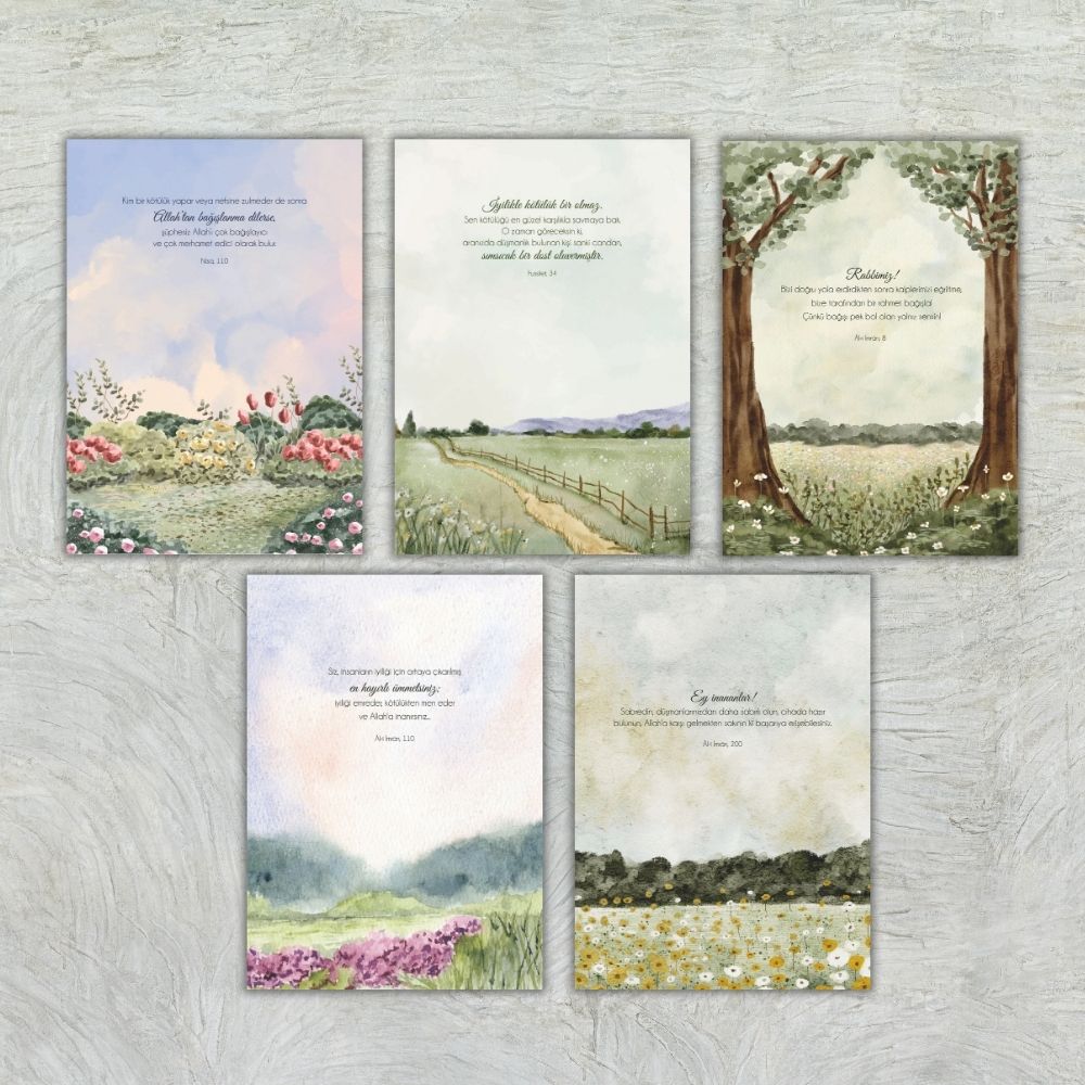 Nurve – Ayet Meali – 5’li İslami Çerçevesiz Poster Seti