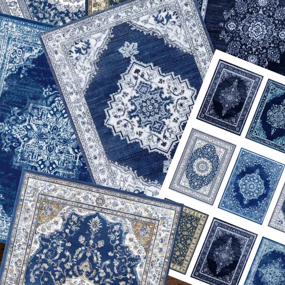 Vadi – Mavi Kilim Desenli Yapışkanlı Scrapbook Kağıtları 10’lu Set #SB111